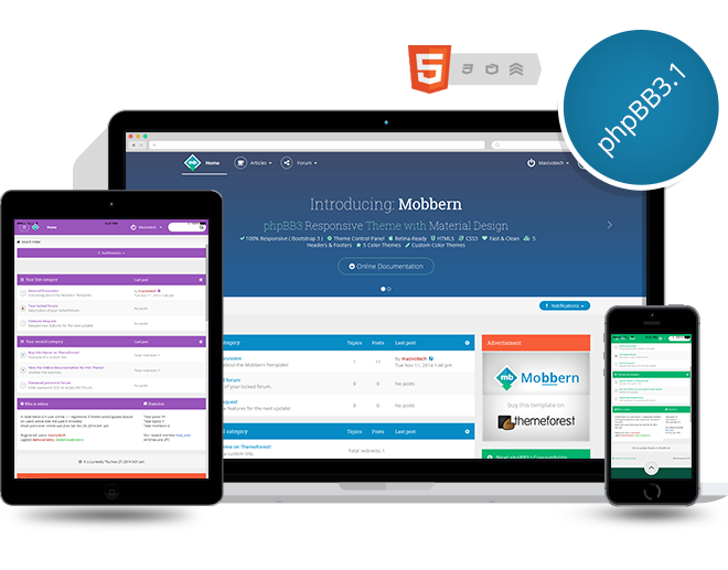 Mobbern - a flexible, responsive & Retina ready phpBB3 theme with a pixel-perfect flat design.